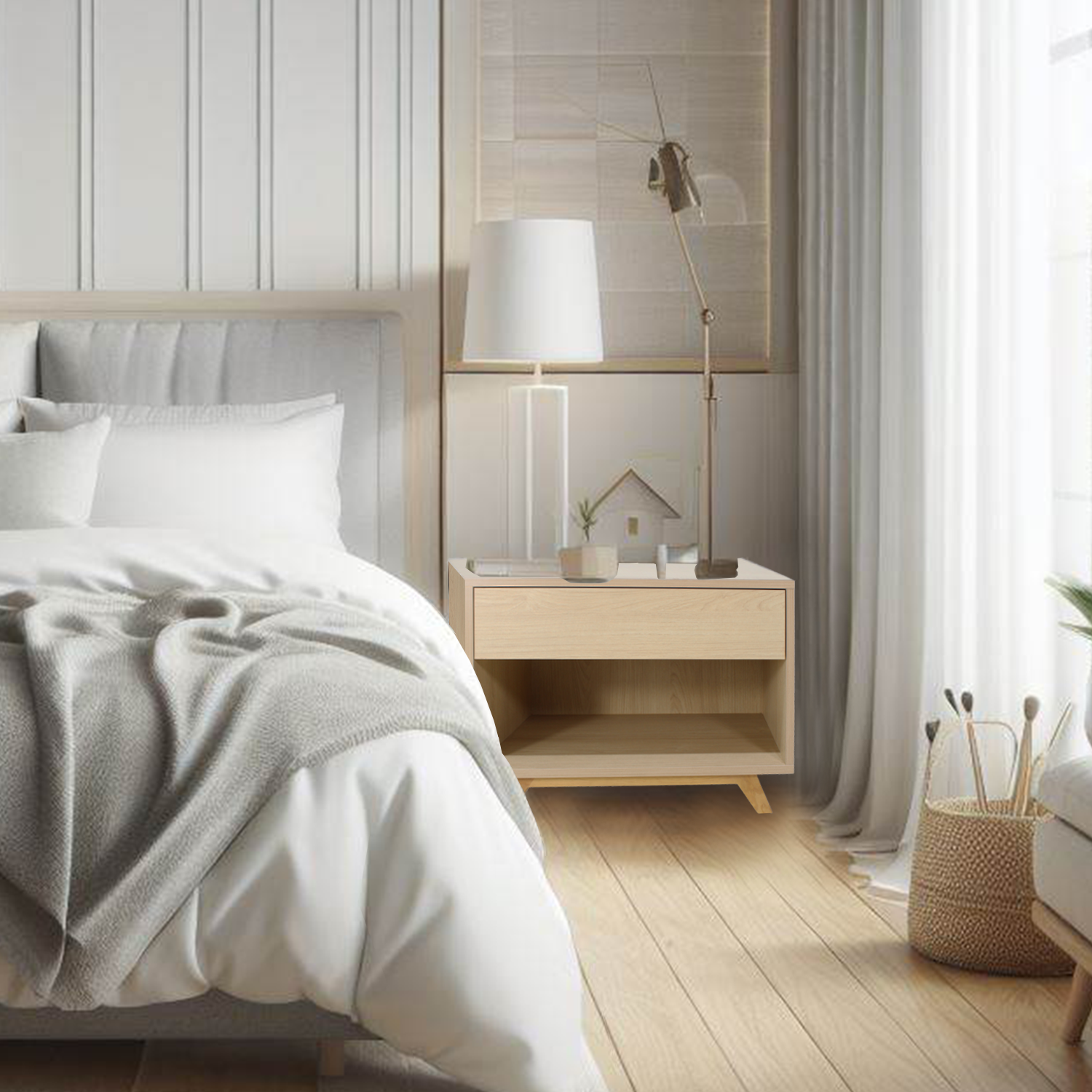 CON CAJON Y HUECO,FABRICADO EN MELAMINA,PATAS DE MADERA MACIZA,COLORES DISPONIBLES NOGAL Y ENCINO